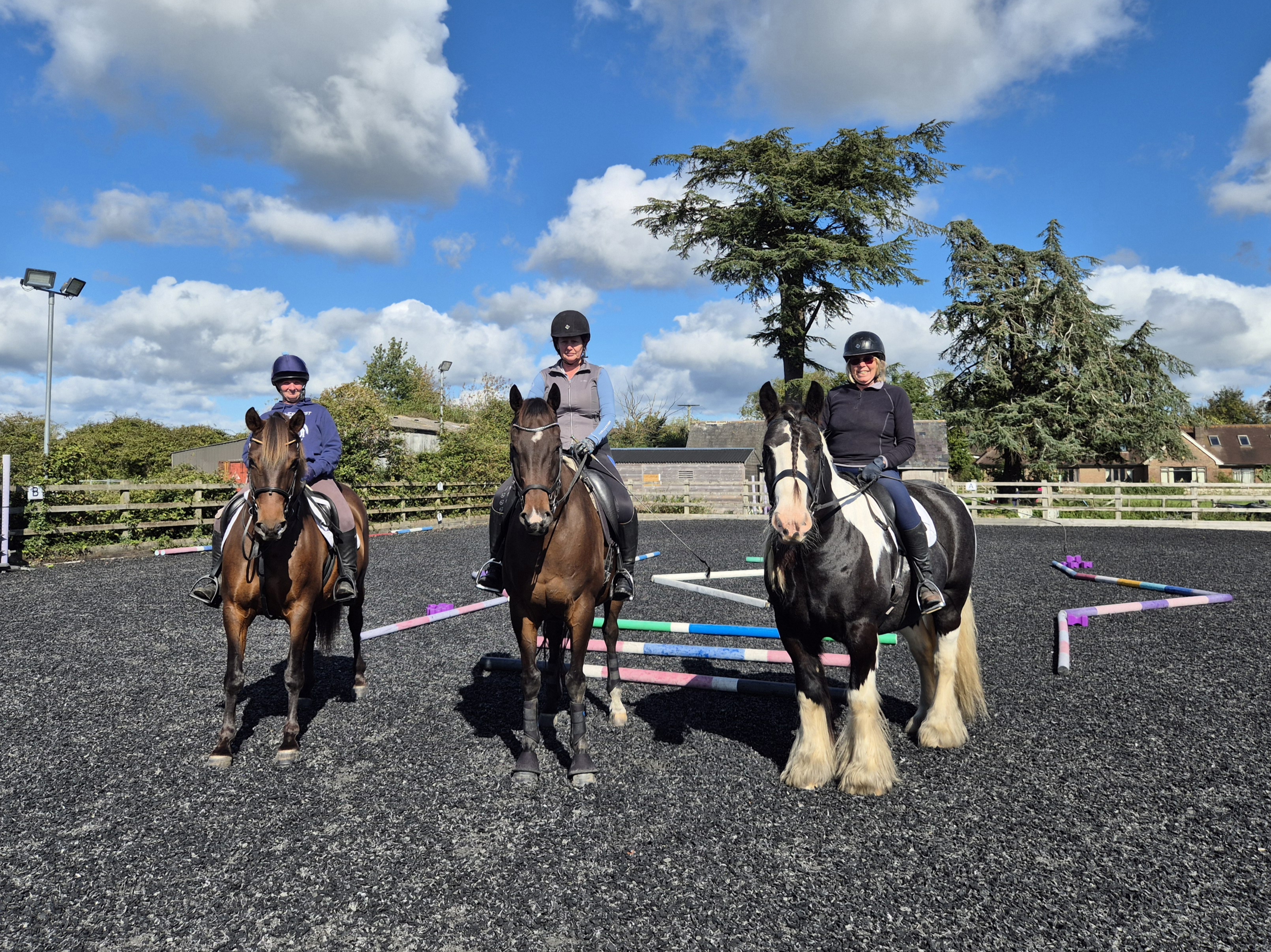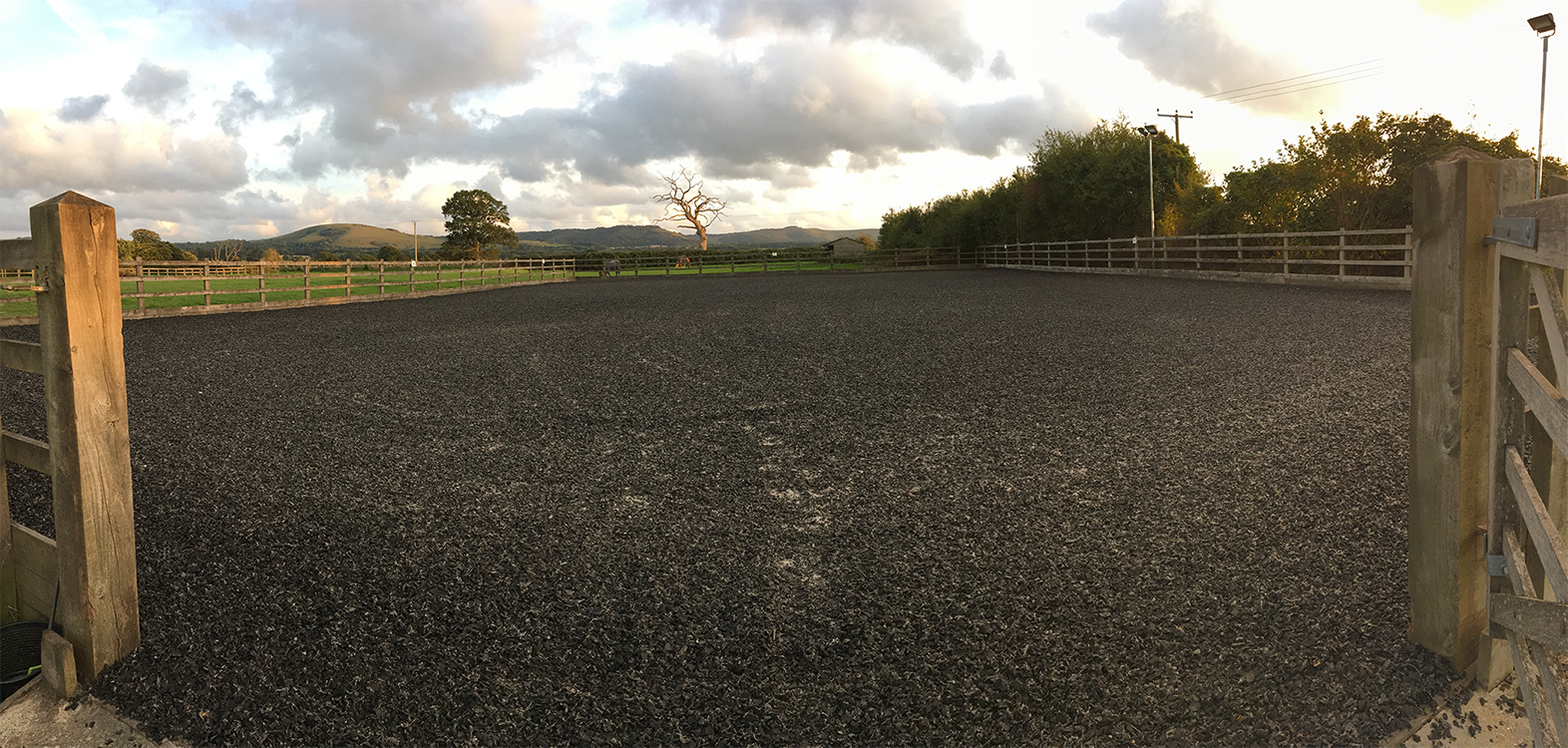 12×14 ft stables with rubber matting, automatic water, and rug racks. Secure tackroom. 25x40m floodlit school, full set of showjumps and dressage markers. All year turn out, groups or individual.